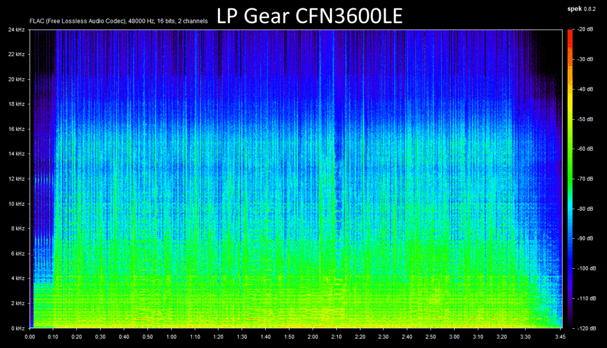 This is using a slower jazz track from Windham Hill Sampler '84. There is almost no difference. The AT3600L seemed like it was mostly just a little louder which makes the frequency response look slightly fuller.
