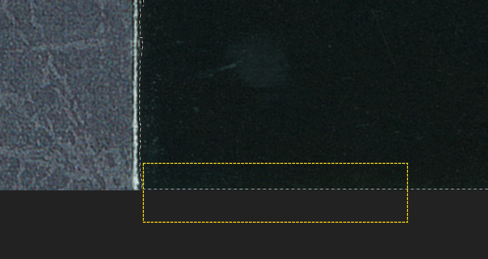 When the negative value (shrink) was used on the selection, it pulled it away from the edge of the page. We need to add that back. Change the Marquee to ADD and then outline the very edge to get back the couple of pixels around the edge.