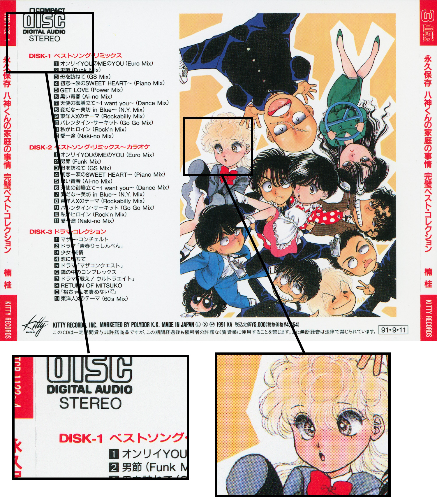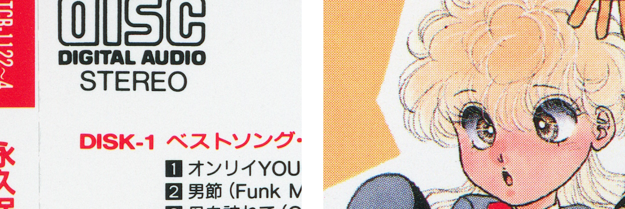 Close up of the different printing technique used. The text uses solid printing. But the picture uses small dots to make representations of colors.