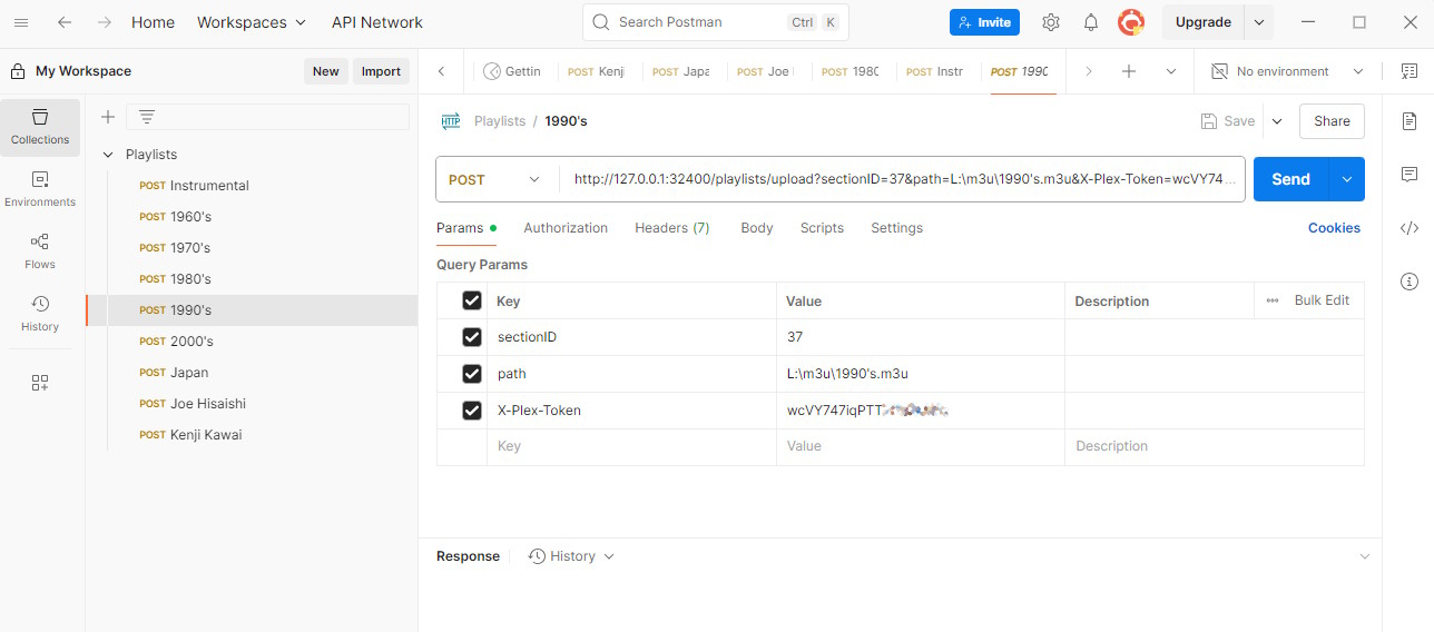 - Will need to periodically resave m3u file for newer tracks added and re-post through Postman to Plex