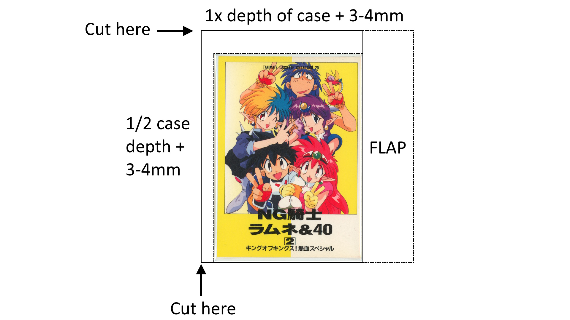 - One the sides not with the flap, add 1x the width of the case, plus several millimeters.